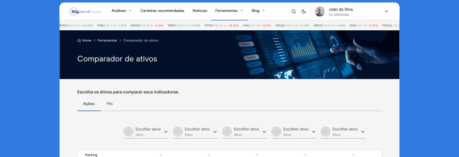 O comparador de ativos do BTG Pactual é uma ferramenta gratuita e integrada ao BTG Content.